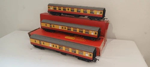 OO gauge EXCELLENT 3x Hornby Tri-ang R626 R627 BR Crimson Cream Coach Comp Brake