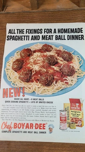 Vtg 1961 Chef Boy Ar Dee Spaghetti and Meat Ball Dinner Ad Complete in 1 Package