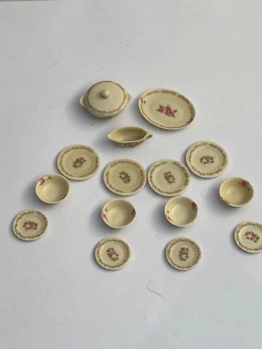 RARE VINTAGE AVON CREAM PINK ROSES DINNER COMPLETE SERVICE DOLLS HOUSE