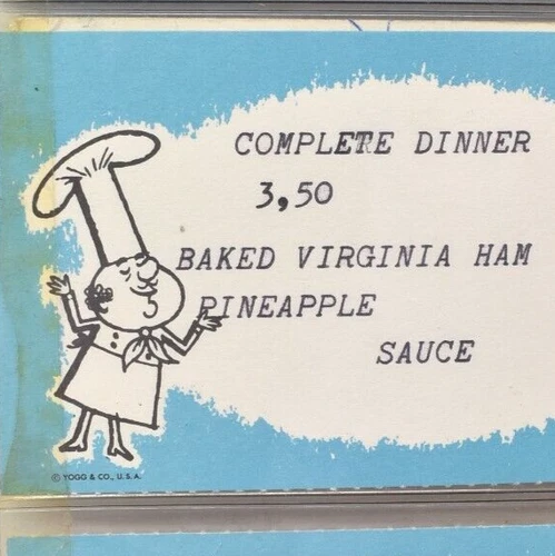 1950s Complete Dinner Restaurant Menu Insert Baked Virginia Ham Pineapple Sauce