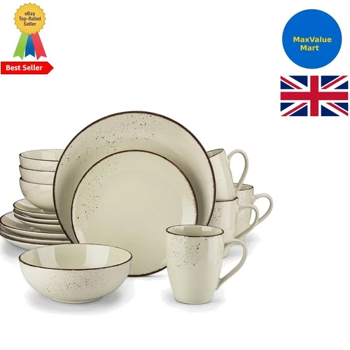 Elegant 16-Piece Beige Stoneware Dinner Set - Dishwasher & Microwave Safe