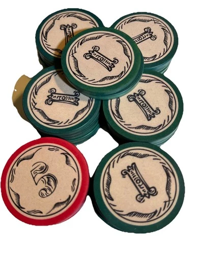 Vintage poker chips 1’s And 5’s Clay composite Vintage Antique 32 Chips