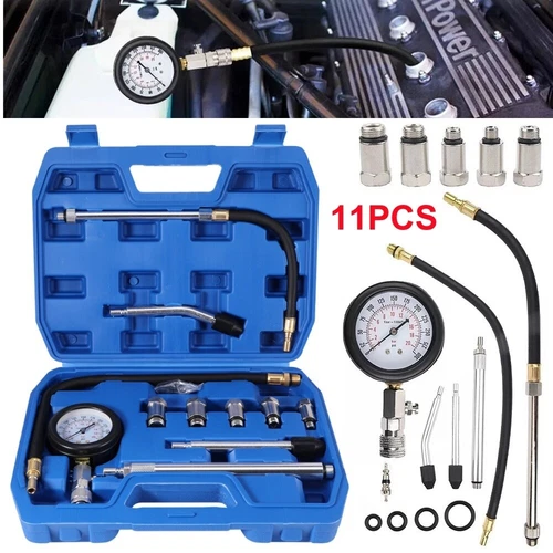 11PCS Petrol Engine Compression Tester Kit Set Fuel Cylinder Pressure Gauge Tool