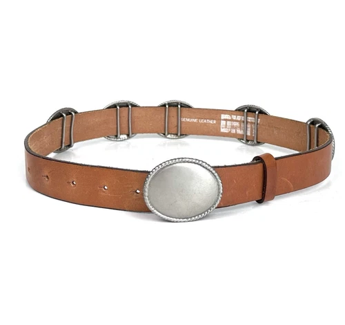 Vtg DKNY Belt Womens S/M 26-30 Brown Leather Silver Concho Southwest Cowboy 90s