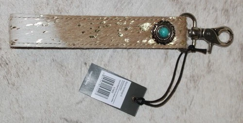 Myra Bag #10832 Key Fob 1"x6.5" Gold Foil, Hairon~Turquoise Concho~Swivel Clasp