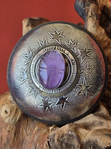 Tabra Belt Buckle Concho 2" Carved Amethyst Sterling Silver Bronze