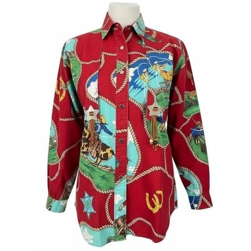 Roper Vintage Western Shirt Women's SMALL Red Cowboy Rodeo Conchos USA Made