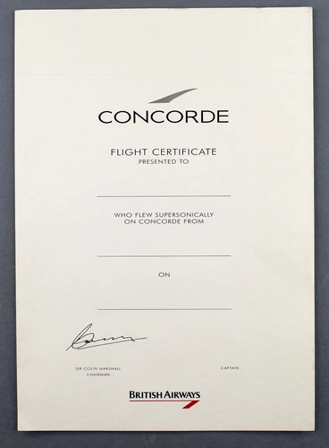 BRITISH AIRWAYS CONCORDE FLIGHT CERTIFICATE BLANK UNUSED BA LANDOR ERA 1990'S