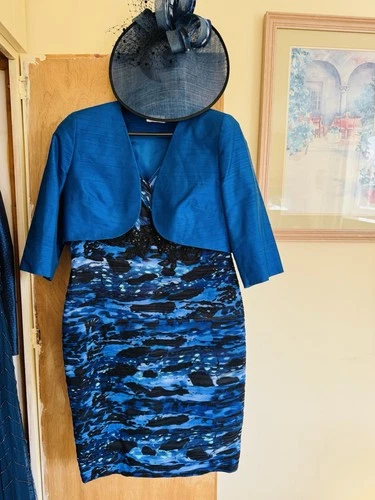 Condici Mother of the Bride/Groom Dress & Jacket Set Blue Size 16 & Fasinator