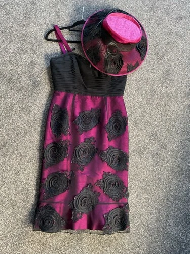 Condici Size 10 Dress Jacket and Matching Hat. Black/ Fuschia. Wedding/ Races
