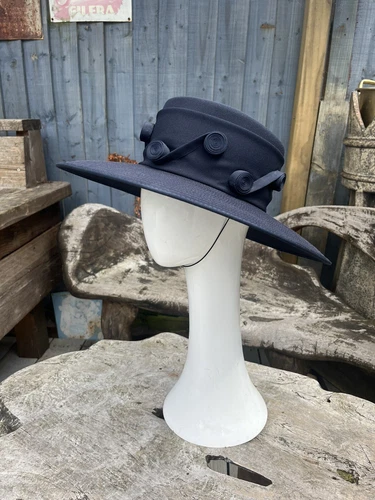 VINTAGE CAPPELLI CONDICI HAT NAVY SIZE S MOTHER OF THE BRIDE RACES FORMAL