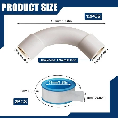 PVC Pipe Fittings Elbow Connectors PTFE Tape Compatible Smooth Inner Wall