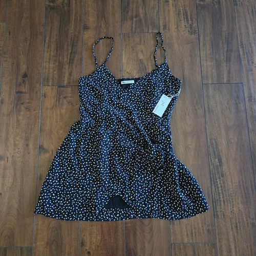 Reformation Black Confetti Troppo Wrap Mini Dress Spaghetti Straps Size Medium