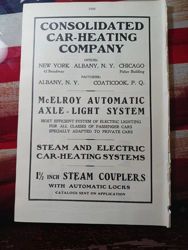 1904 Print Ad ~ CONSOLIDATED CAR HEATING COMPANY Albany NY railroad Cars & Train