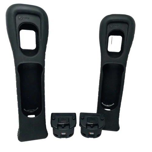Black Official Nintendo Wii Motion Plus Adapters x2 + Silicone Cases Cover Skins