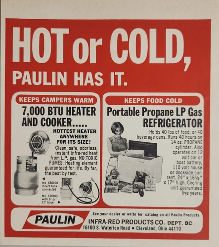 1970 Print Ad Paulin Propane Gas Heater & Cooker, Portable Refrigerator Cleve,OH
