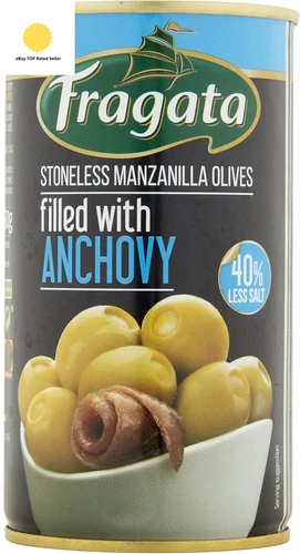 Stoneless Olives Filled with Anchovy (Low Salt) (8X350G Case)