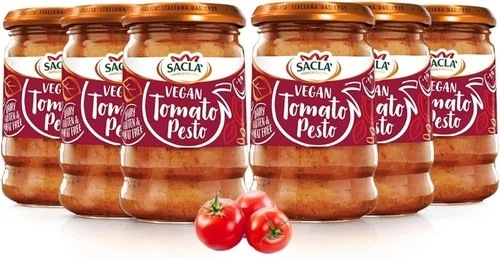 Sacla Vegan Tomato Pesto - Free From Dairy, Wheat and Gluten, Perfect with Past
