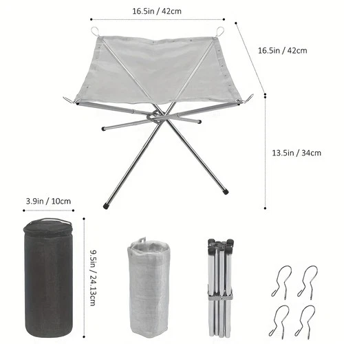 Folding Portable Fire Pit Mesh Fire Pit Bonfire Stand W/Carry Bag for Camping