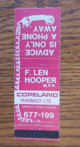 COPELAND PHARMACY MATCHBOOK COVER: LOWER HUTT, NEW ZEALAND EMPTY MATCHCOVER -B9