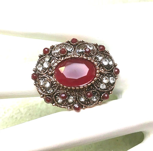 Cocktail Ring Costume Jewelry Red Clear Rhinestones Adjustable Runway Urban Glam