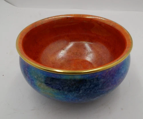 Antique 1930s Grimwades Byzanta Ware Lustre Blue Copper Accent Bowl