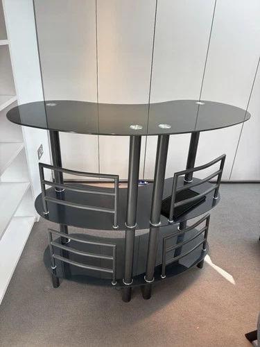 Corner Bar Cabinet with Glass Holder, 4 Tier Liquor Cabinet with Metal Mesh