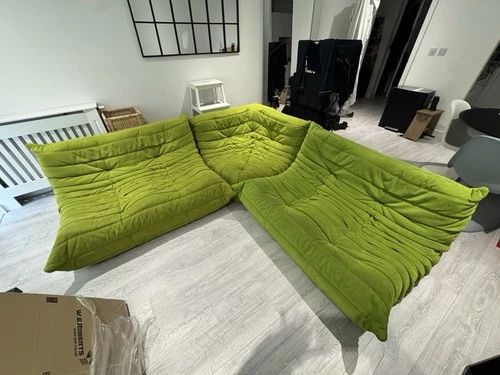 Lignet Roset Togo 2x 2 Seaters 1x Corner Sofa Green Alcantara Leather