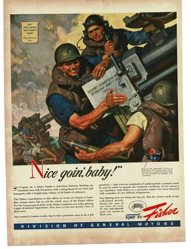 1943 GM Body By Fisher WWII US Navy Anti-Aircraft Gun art DEAN CORNWELL