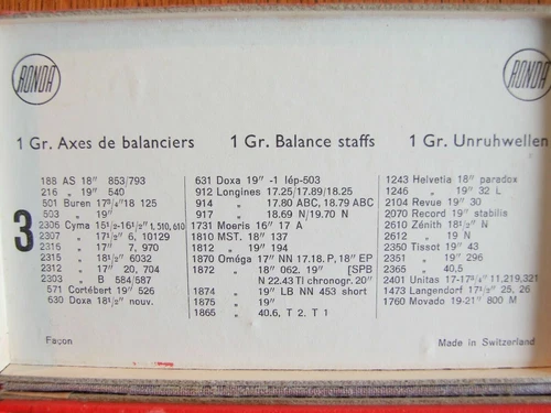 Ronda Numbered / Graded Pocket Watch Balance Staff. new stock . You Choose!