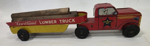 VTG 1940s 50’s Tin Courtland a Walt Reach Toy Lumber Truck and Trailer