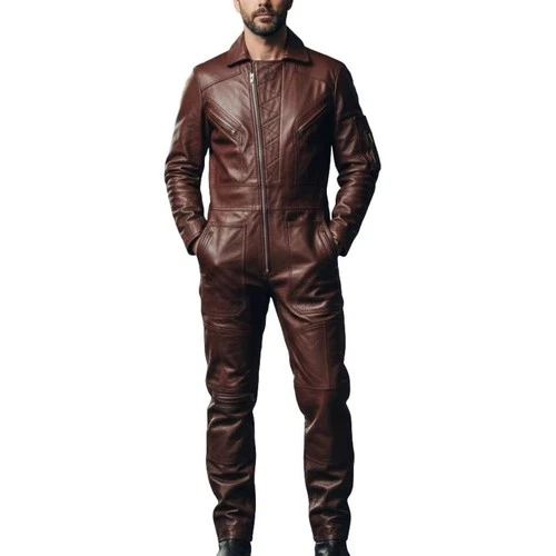 BESPOKE MENS EXOTIC BROWN LEATHER CATSUIT OVERALL BODYSUIT JUMPSUIT COSPLAY