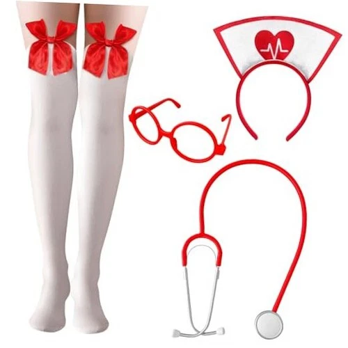 4 Pcs Nurse Costume Accessories for Women, Halloween Cosplay Kit with White