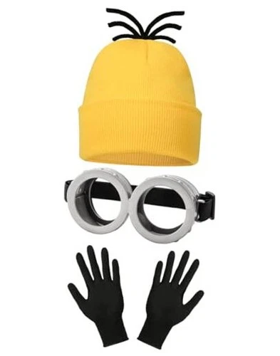 Halloween Costume Adult Accessories,Yellow Beanie Goggles Glasses Gloves 3 Pcs