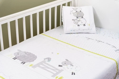 Baby Cot Bed Bedding Set-3 Piece Counting Sheep Silver Cloud