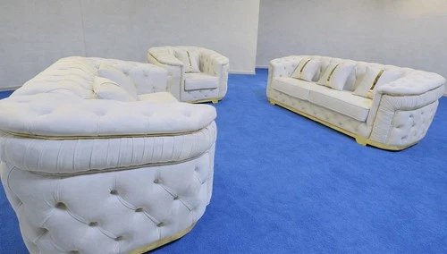 Luxury | Ambassador Chesterfield 3+2 | Cream Velvet | Gold Trims | With Cushions