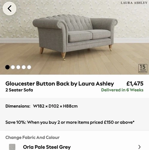 NEXT Laura Ashley Gloucester Button Back 2 Seater Sofa BRAND NEW