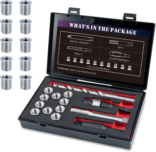 7/16-14 SAE Thread Repair Kit with Insert HSS Drill, Tap, Counterbore, Installa