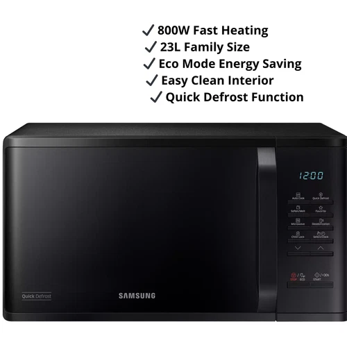 Samsung 800W 23L Microwave Black MS23K3513AK Digital Solo ECO Quick Defrost