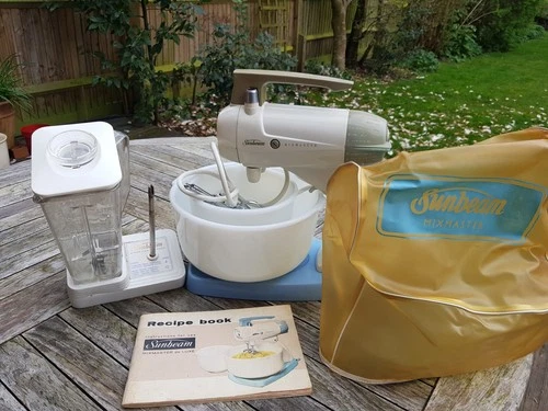 Vintage Sunbeam Mixmaster De Luxe, Blender Attachment, Bowls, Cover, Recipe Book