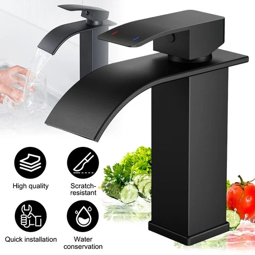 Modern Bathroom Waterfall Basin Mixer Tap High Rise Washroom Tap for Counter-top