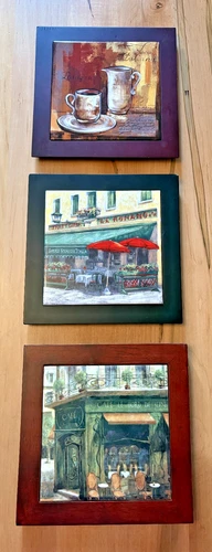 Lot of 3 Italian Themed Cafe Ceramic Tile Wall Decor or Trivet - 8 x 8 Inches