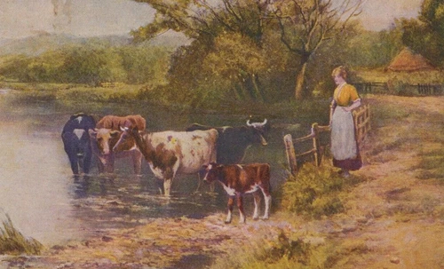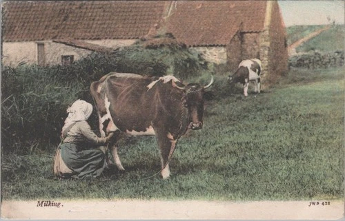 Animals Postcard-Rural Farming, Milkmaid Milking a Guernsey or Jersey Cow XT1361