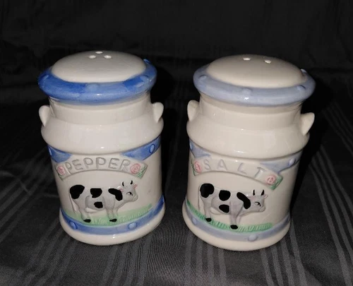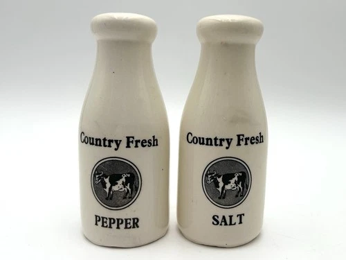 Vintage Farm Country Fresh Milk Bottle Salt and Pepper Shakers Cows.