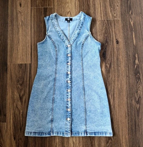 Frye Sleeveless Button Down Stretch Denim Dress Size S Western Coastal Cowgirl