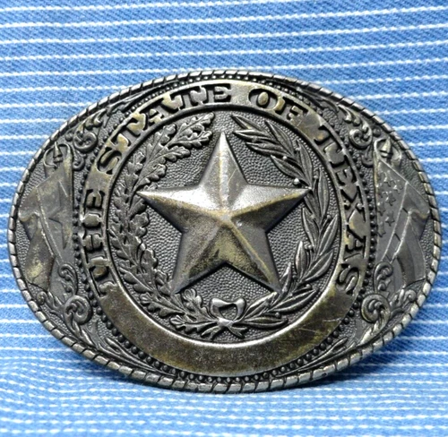 State Of Texas Belt Buckle Western Cowboy Cowgirl Star Scroll Vtg 80s TGABC.B247