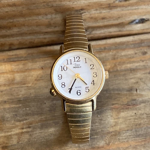 Timex Womens Watch Quartz CR1216 Cell Indiglo Face Gold Needs New Battery