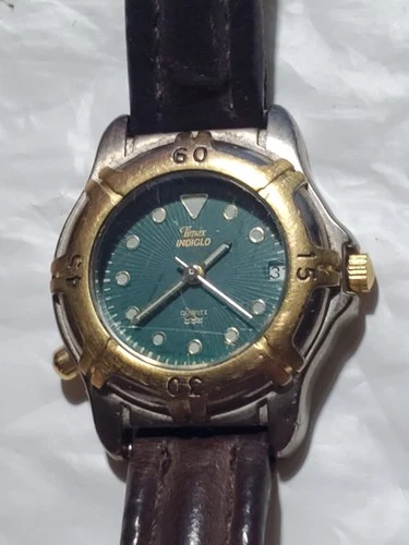 VINTAGE TIMEX INDIGLO QUARTZ LADIES WRIST WATCH GOLD TONE CR 1216 CELL