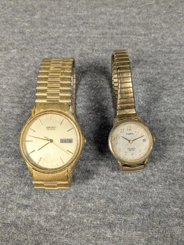 Vtg Seiko 5Y23-8039 Gold Tone Watch And Timex CR 1216 Ladies Gold Tone FOR PARTS