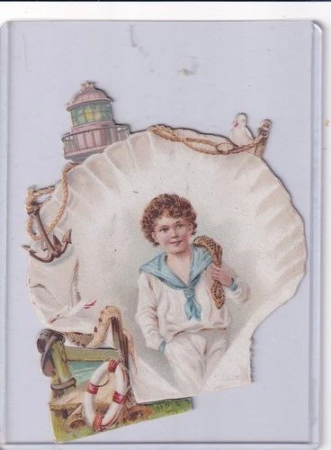 CHOCOLAT PAYRAUD Lyon - DIE CUT Trade Card - Child In Shell 8cm x 11cm